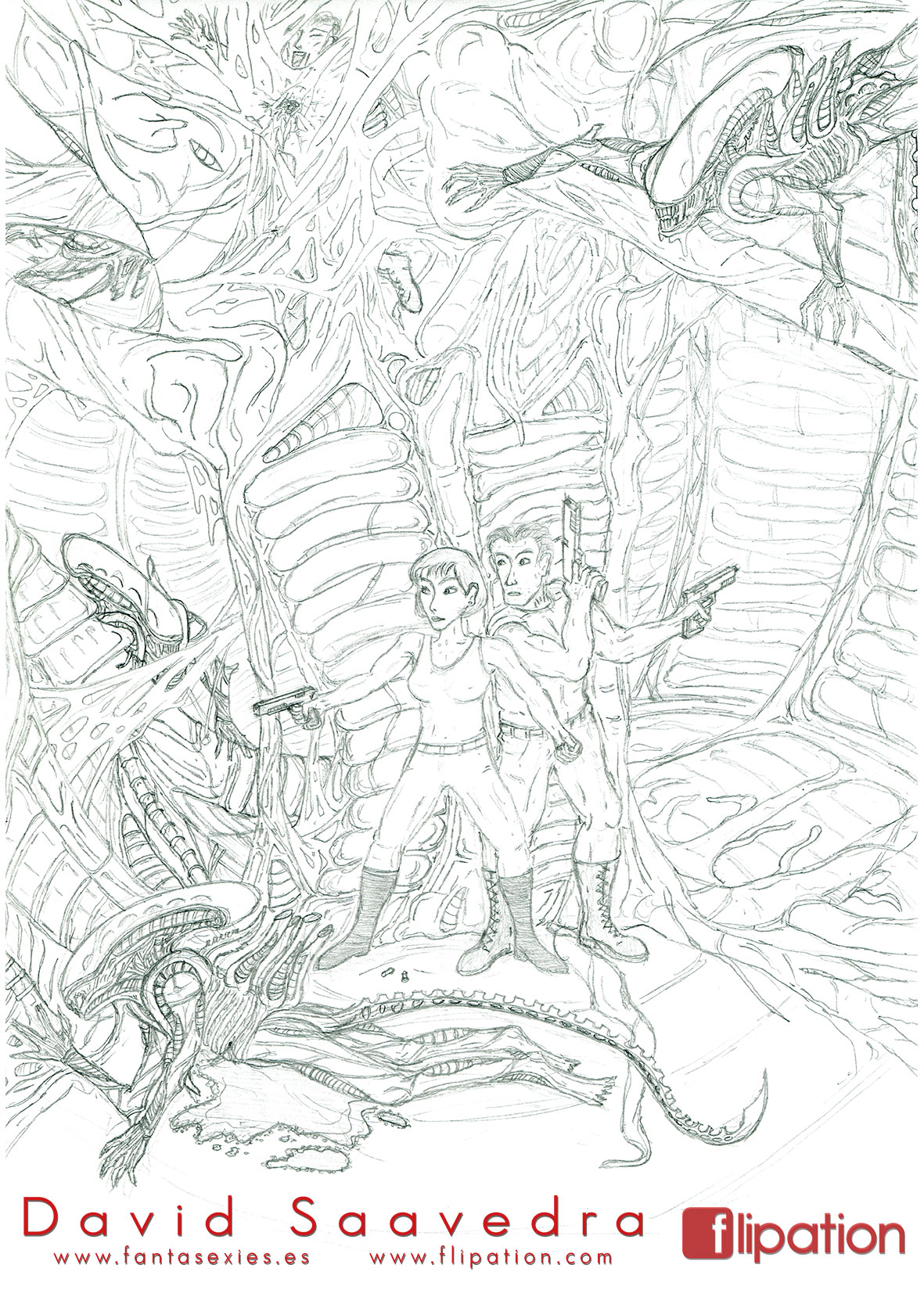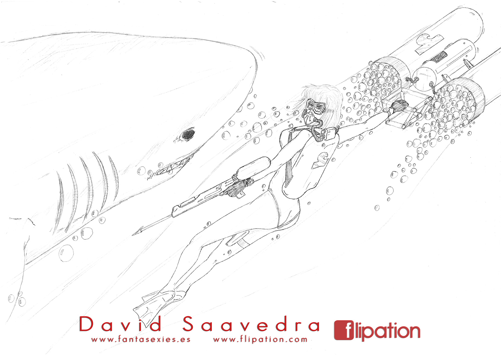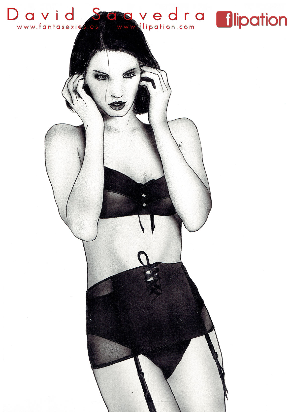 Dibujo en blanco y negro sombreado con aerógrafo.