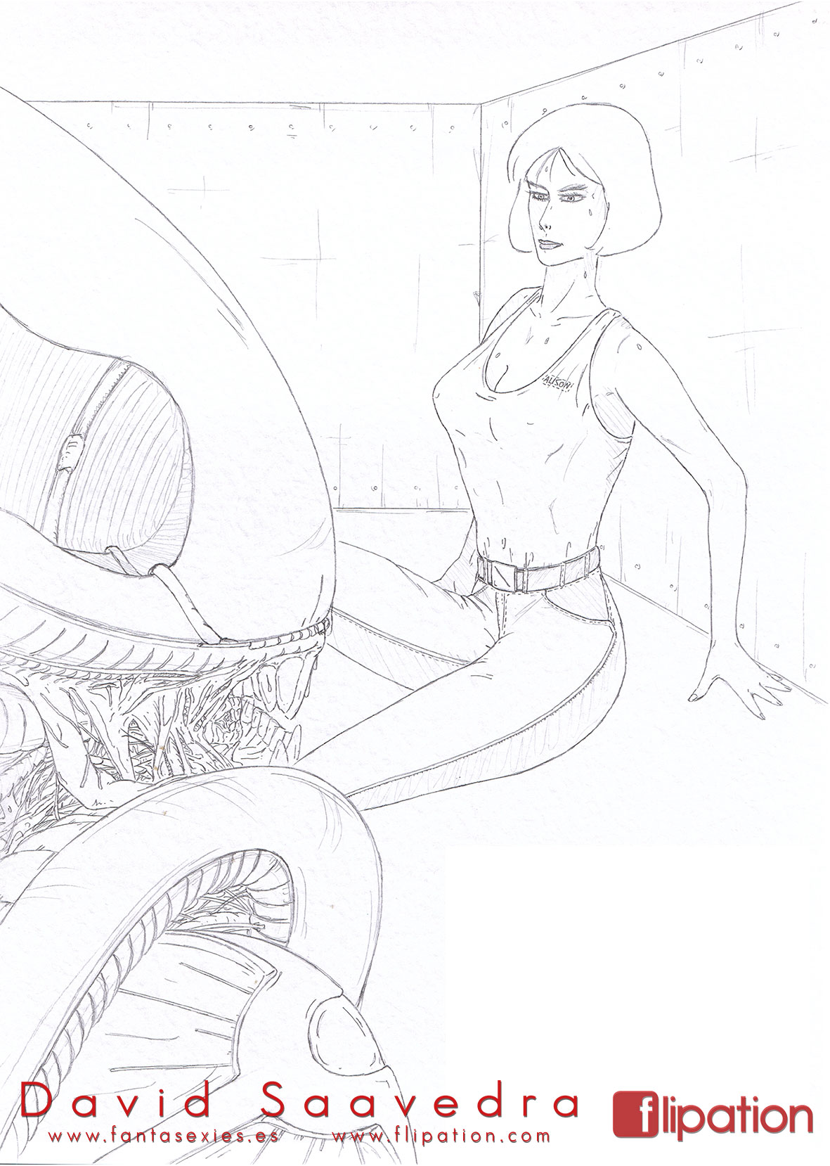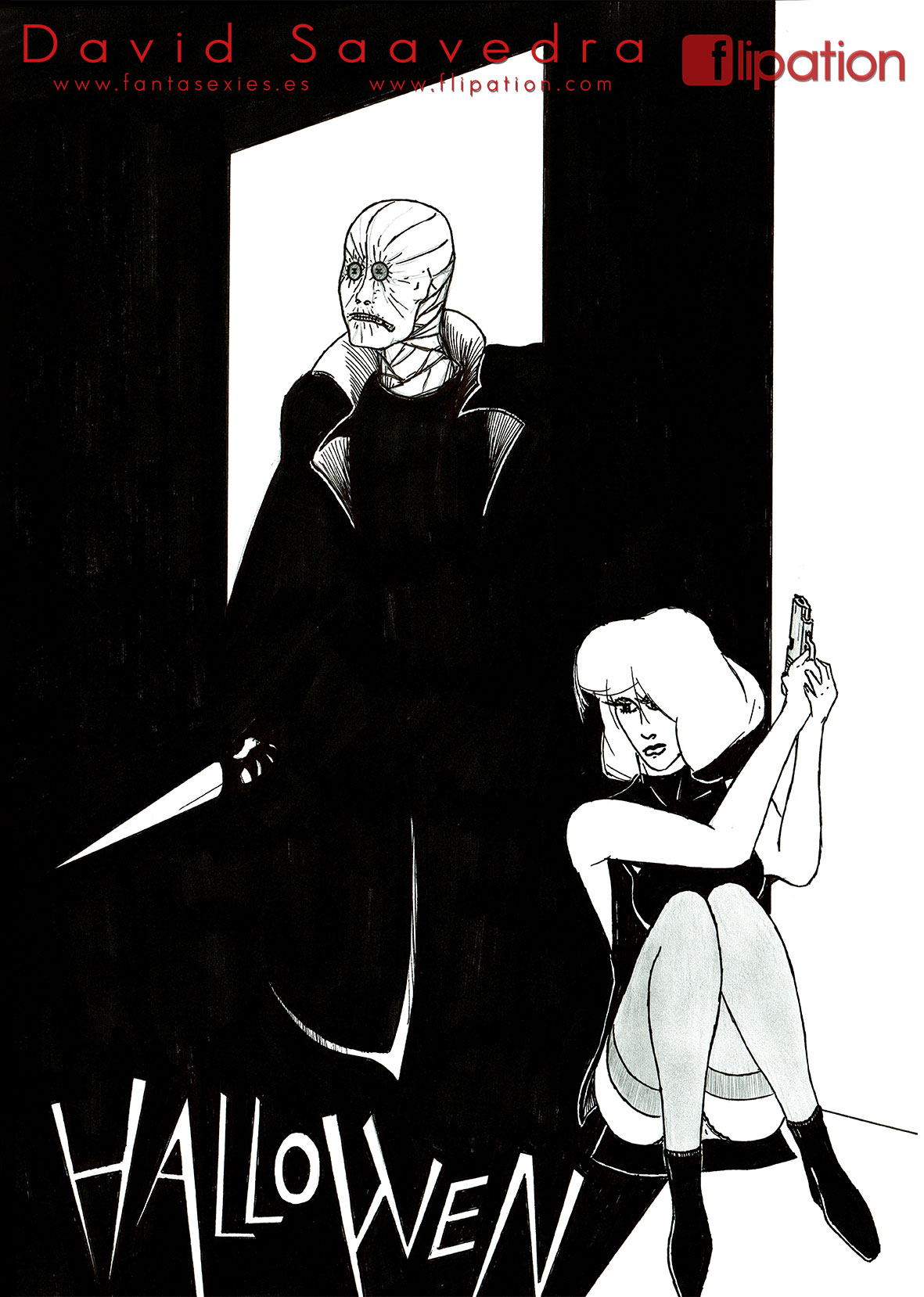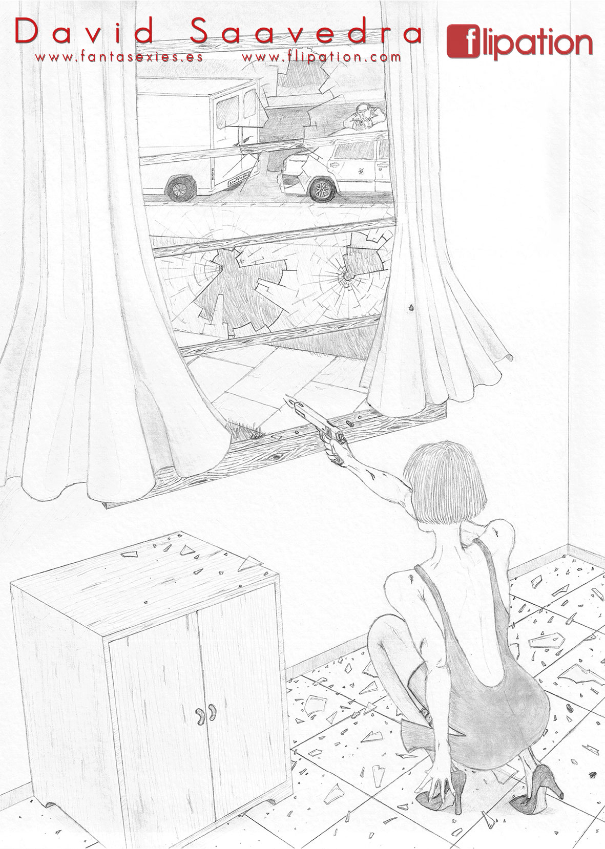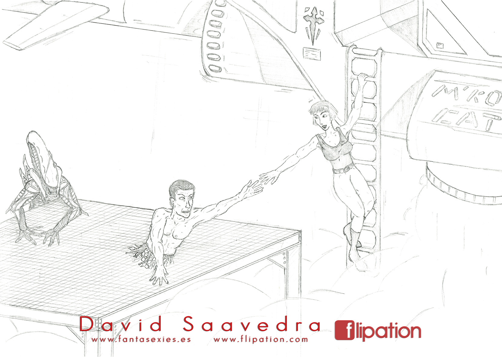 Otro dibujo de agente especial perseguida por asesino en serie inspirado en el Dr. Philip K. Decker de la película Razas de Noche.