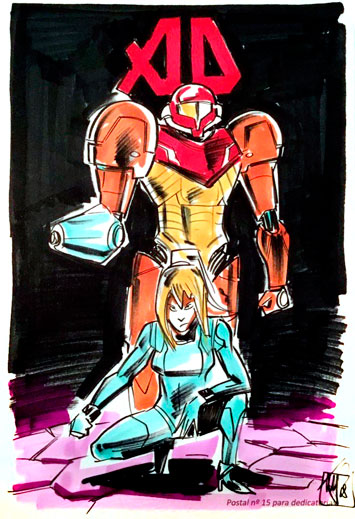 dedicatoria de su libro RUN JMV. Y, realmente, materializar en una ilustración a Samus Aran, la heroína de Metroid, combinando los elementos de una portada tan emblemática como es la de