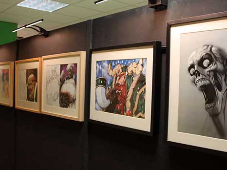La organización habilitó un espacio de exposiciones donde, aparte de mis ilustraciones, también se pudieron ver las obras de Isabel Cano y Victor Somoza, este último, creador de Real Bits y de los documentales Memorias: Más alla del juego.